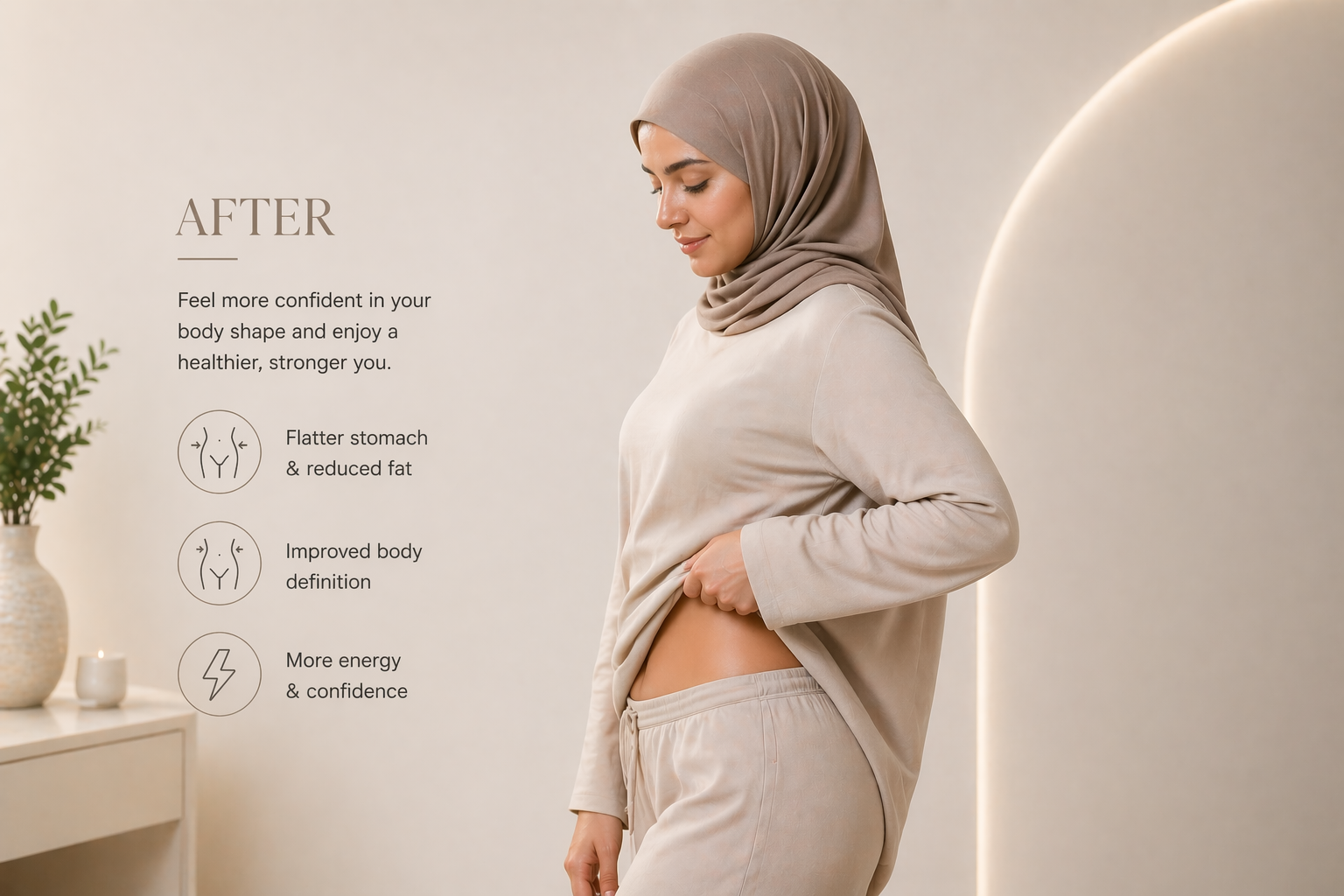 بعد أربع جلسات فقط لاحظت فرق واضح في شدّ البطن وتناسق الخصر — الجلسة مريحة وممتعة.